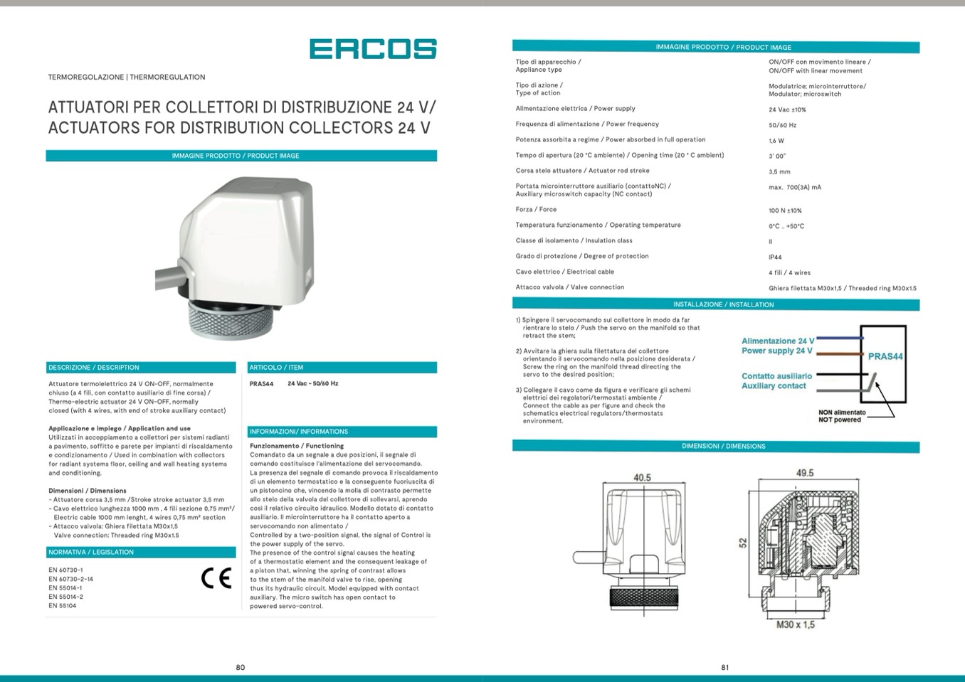.Attuatore termolelettrico 24 V ON-OFF, normalmente