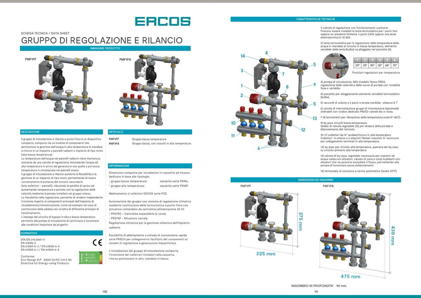 e ritorno in un impianto a pannelli radianti o impianto di tipo misto