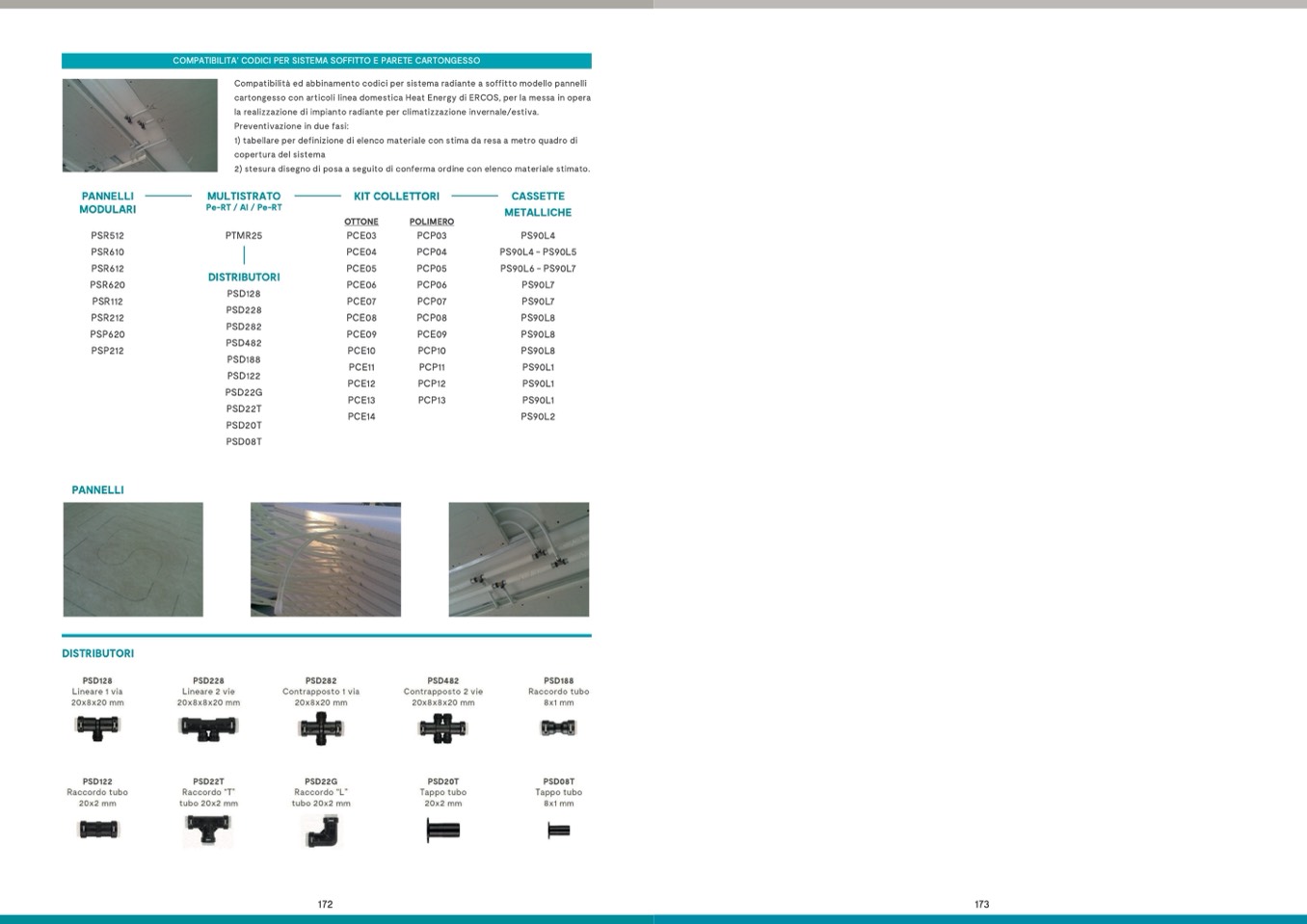 Compatibilità ed abbinamento codici per sistema radiante a soffitto modello pannelli