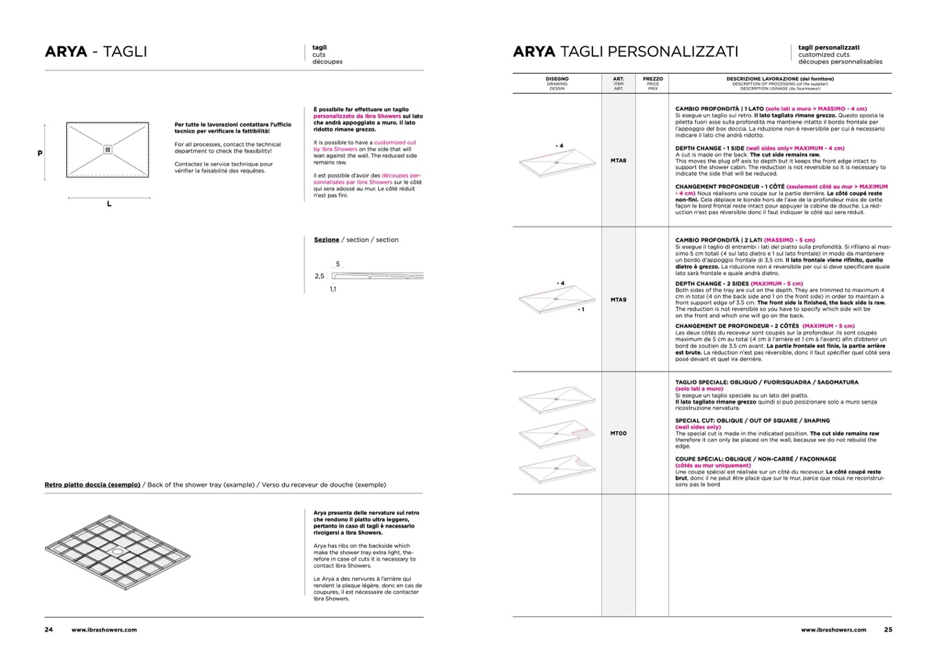 Retro piatto doccia (esempio) / Back of the shower tray (example) / Verso du receveur de douche (exemple)