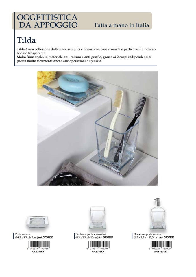 Tilda è una collezione dalle linee semplici e lineari con base cromata e particolari in policar-