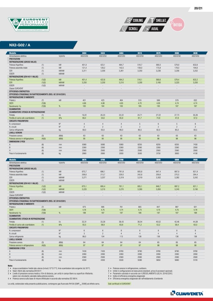 Dati certificati in EUROVENT