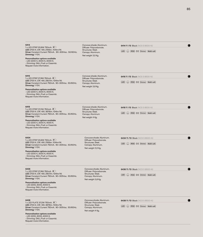 LED 2700 K. CRI >90. 3876lm. 104lm/W.