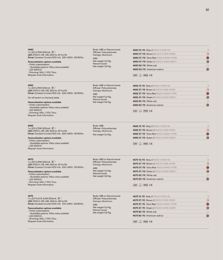 LED 2700 K. CRI >90. 500 lm. 87 lm/W.