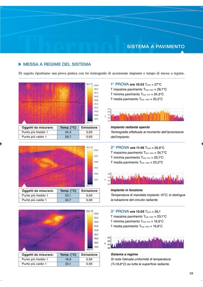 Di seguito riportiamo una prova pratica con tre termograÀe di accensione impianto e tempo di messa a regime.