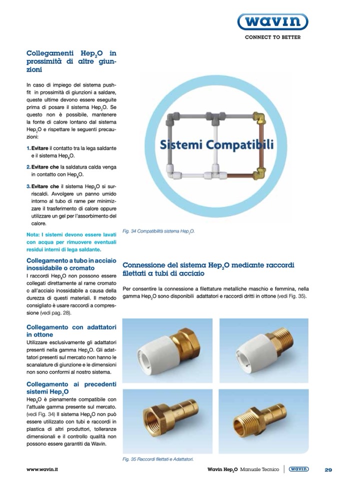 O sono disponibili adattatori e raccordi dritti in ottone (vedi Fig. 35).