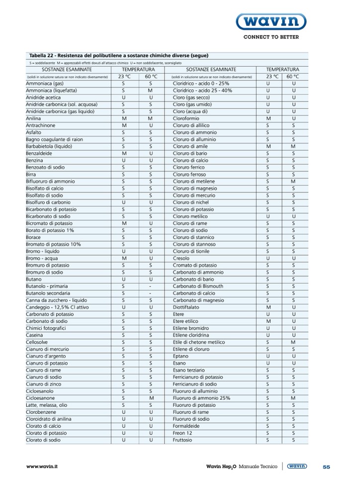 Tabella 22 - Resistenza del polibutilene a sostanze chimiche diverse (segue)