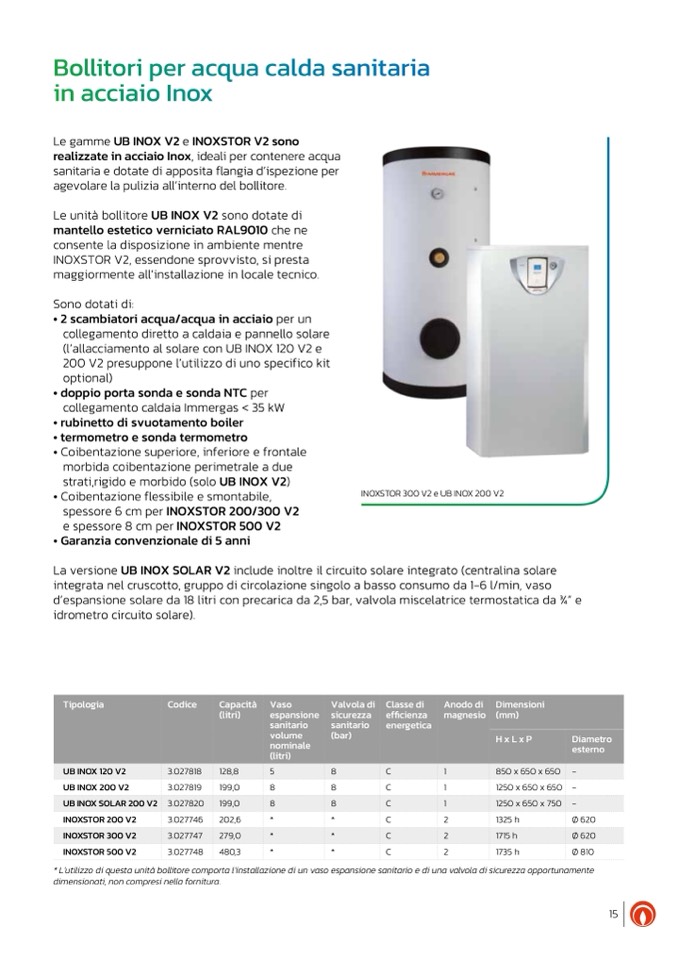 Le gamme UB INOX V2 e INOXSTOR V2 sono
