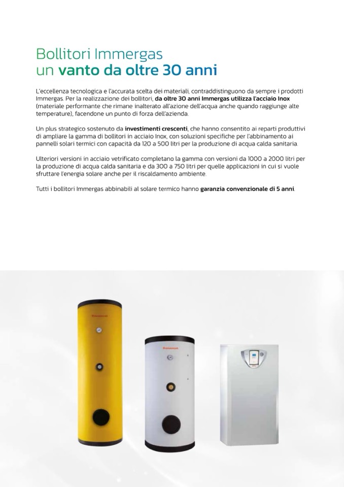 Tutti i bollitori Immergas abbinabili al solare termico hanno garanzia convenzionale di 5 anni.