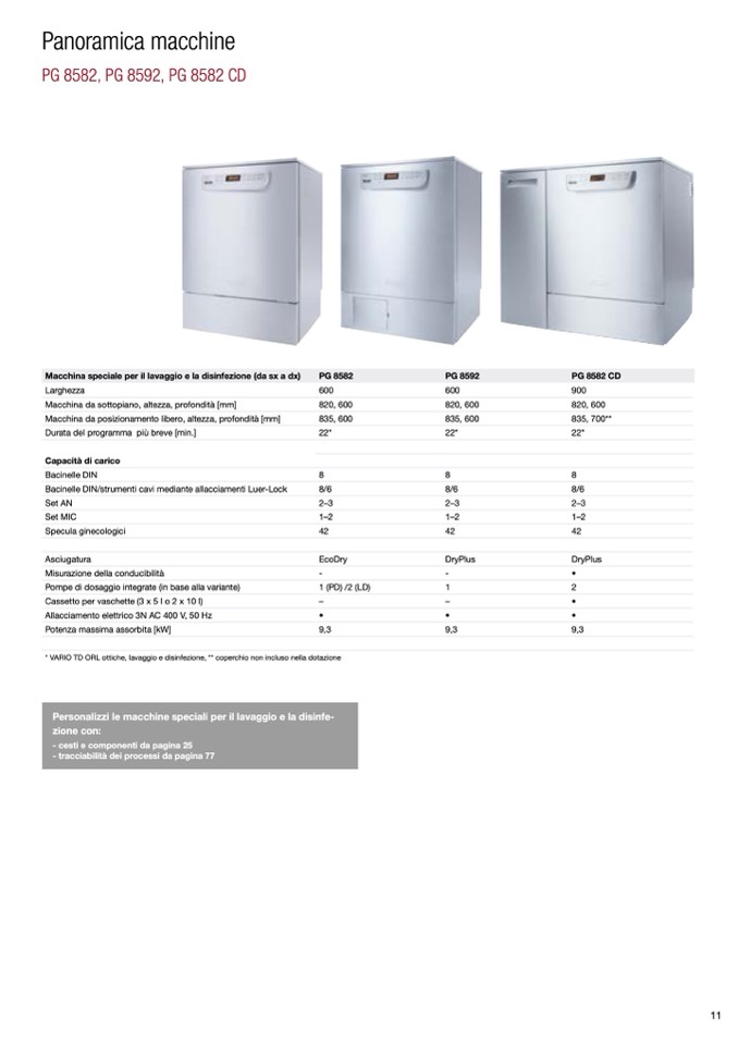 Macchina speciale per il lavaggio e la disinfezione (da sx a dx)