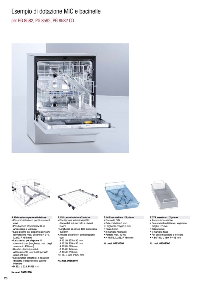 • Per cesto superiore e inferiore