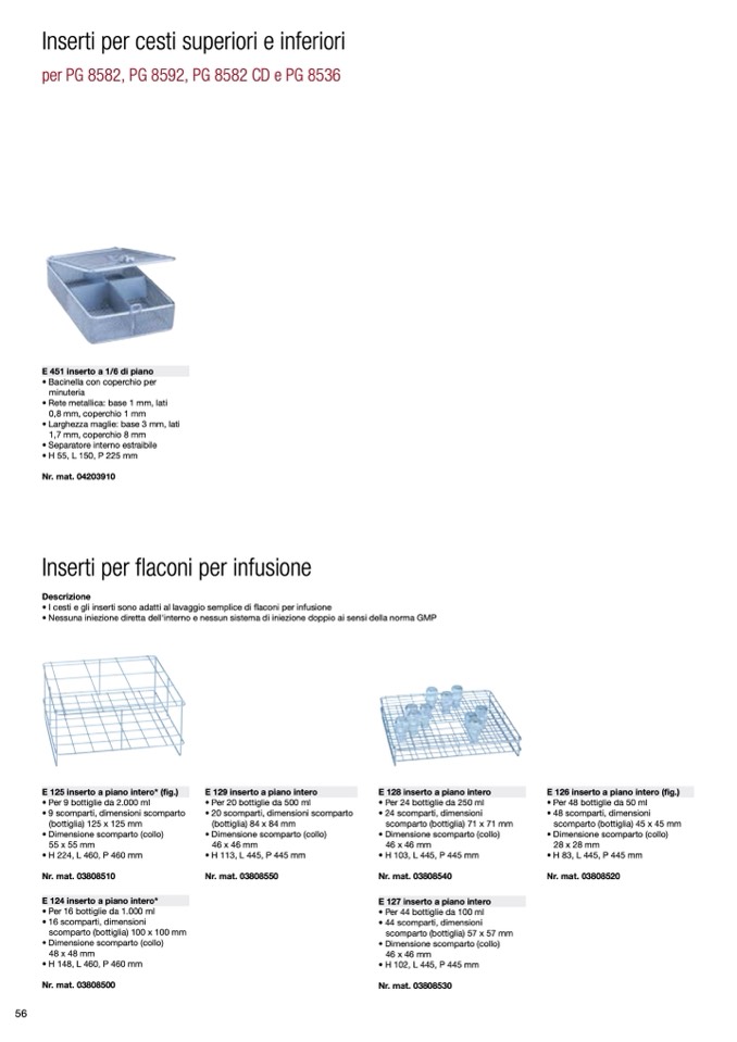 • I cesti e gli inserti sono adatti al lavaggio semplice di flaconi per infusione