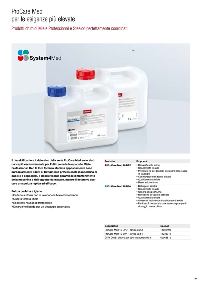 Il decalcificante e il detersivo della serie ProCare Med sono stati