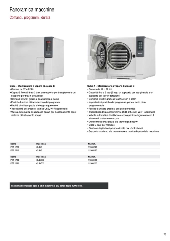 Main maintenance: ogni 5 anni oppure al più tardi dopo 4000 cicli.