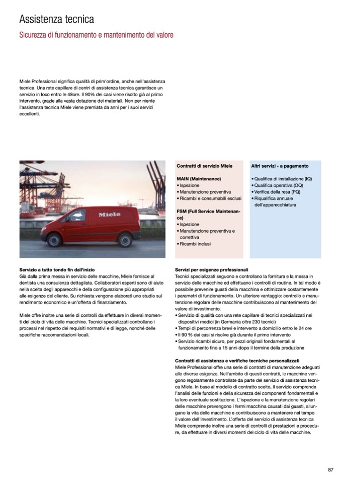 Già dalla prima messa in servizio delle macchine, Miele fornisce al