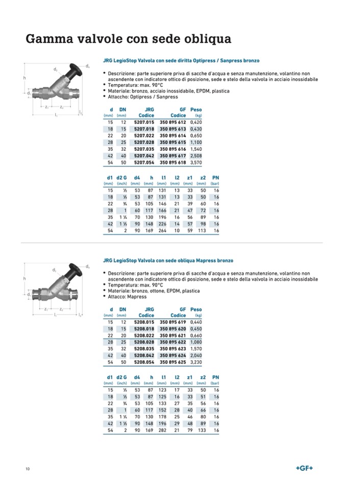 JRG LegioStop Valvola con sede diritta Optipress / Sanpress bronzo