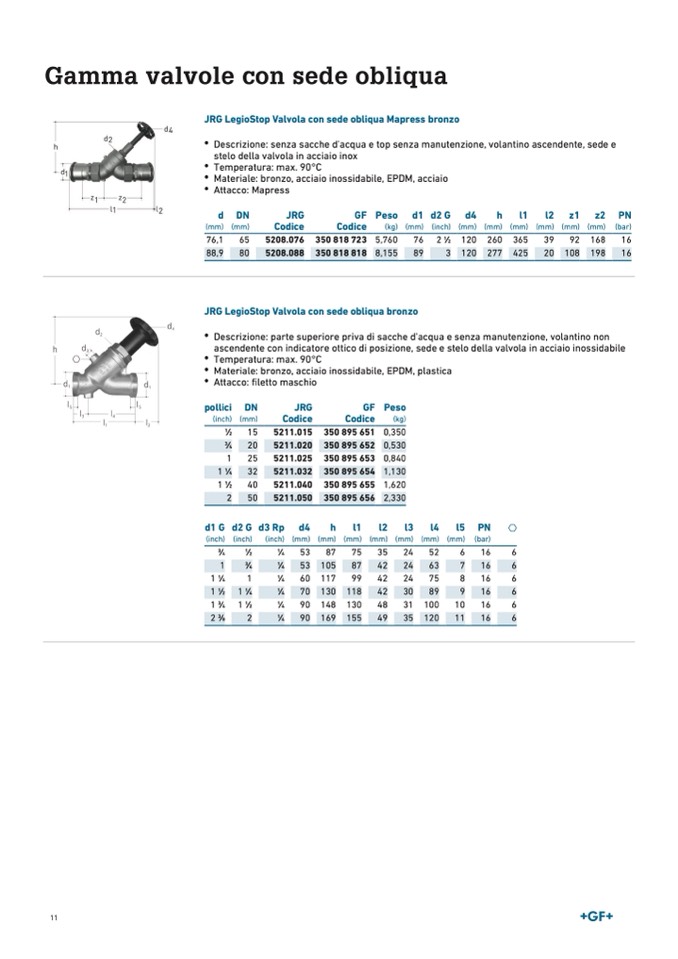 JRG LegioStop Valvola con sede obliqua bronzo