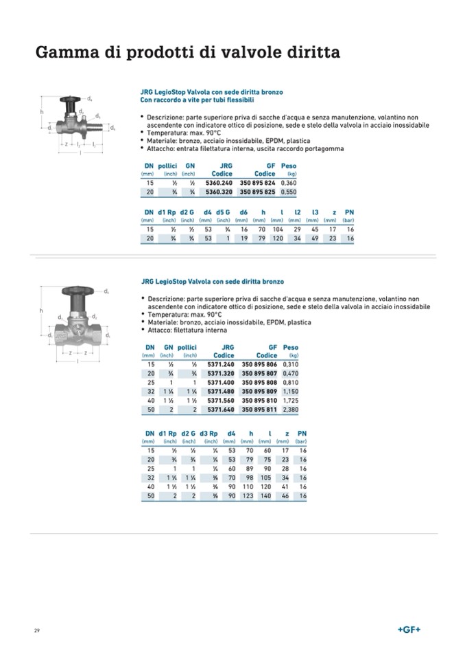 Materiale: bronzo, acciaio inossidabile, EPDM, plastica