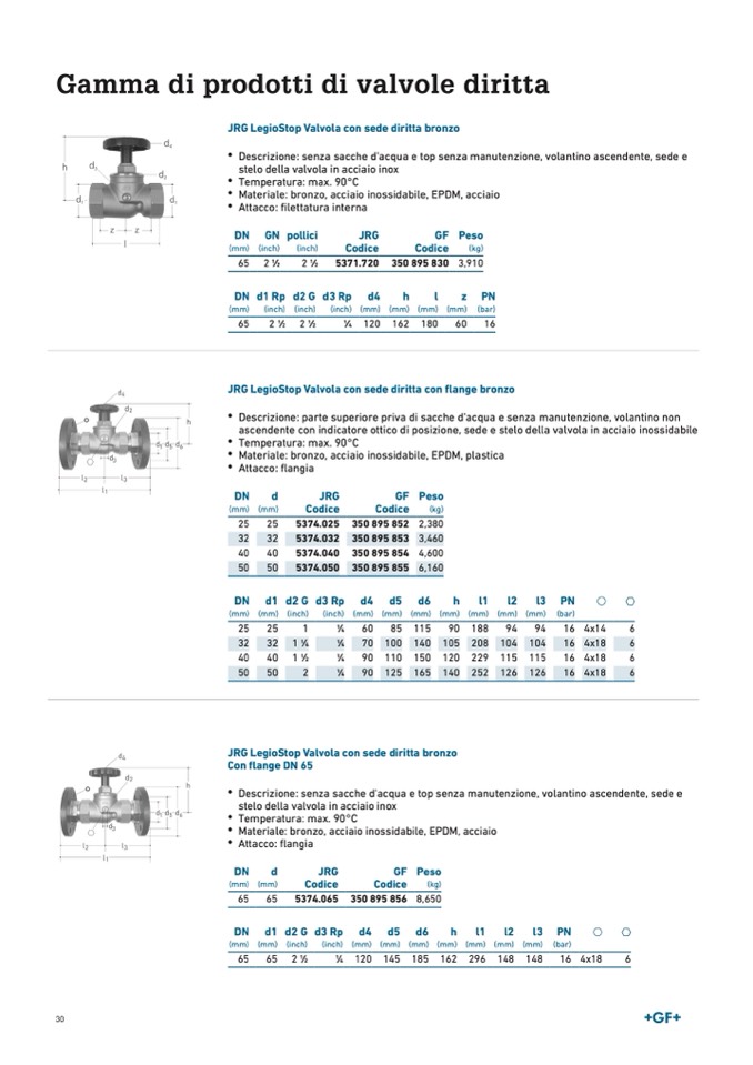 Materiale: bronzo, acciaio inossidabile, EPDM, plastica