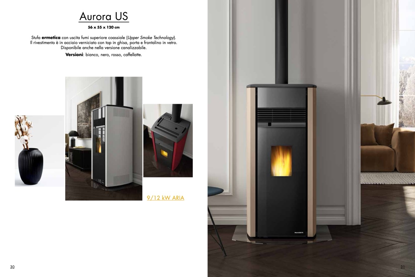 Stufa ermetica con uscita fumi superiore coassiale (Upper Smoke Technology).