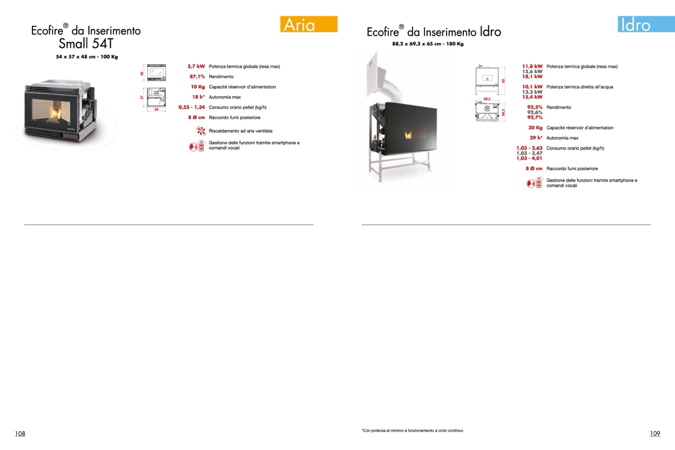 *Con potenza al minimo e funzionamento a ciclo continuo
