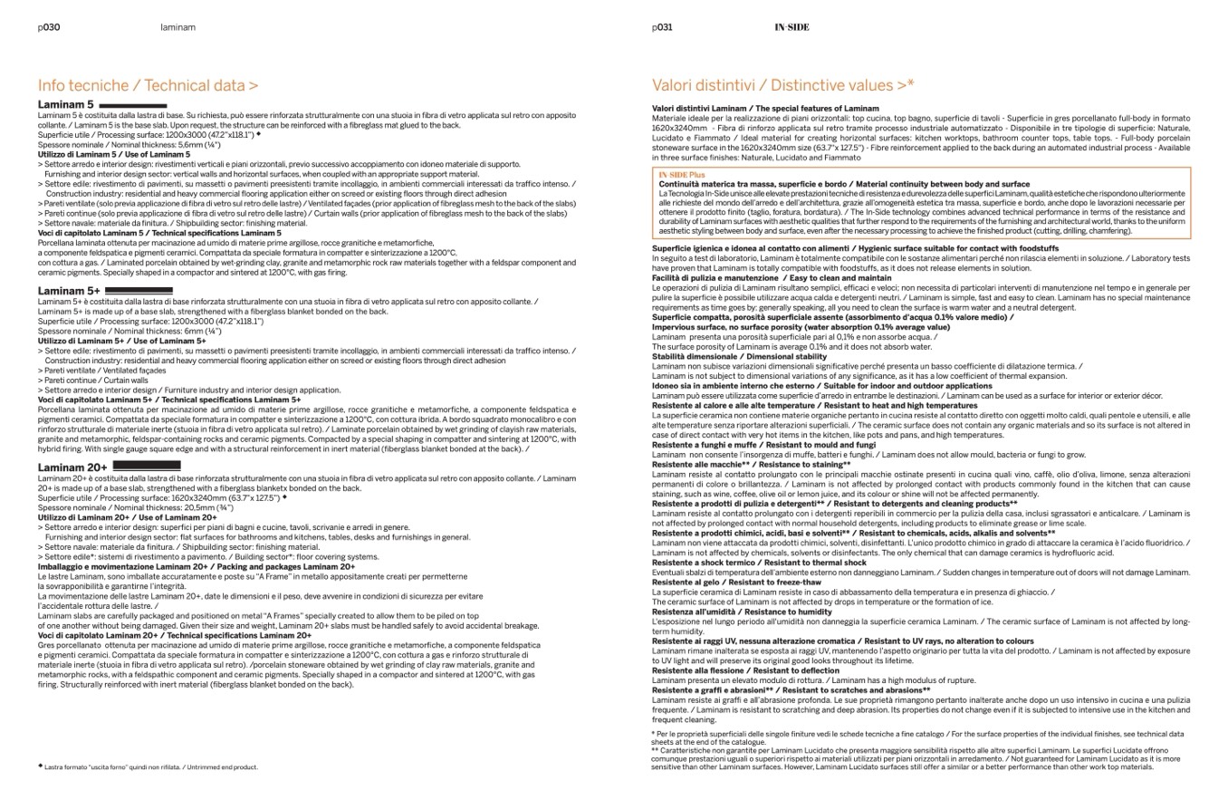 Voci di capitolato Laminam 20+ / Technical specifications Laminam 20+