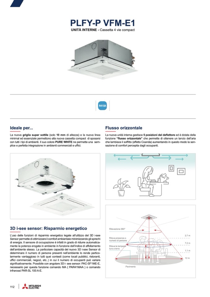 La nuova unità interna gestisce 5 posizioni del deflettore ed è dotata della