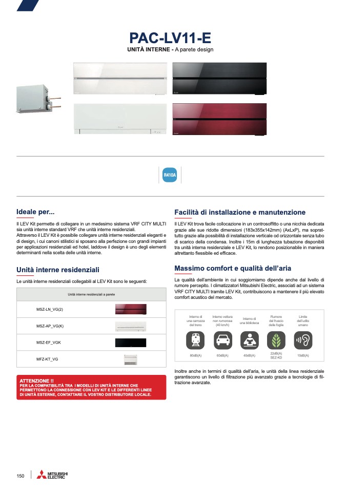 Attraverso il LEV Kit è possibile collegare unità interne residenziali eleganti e