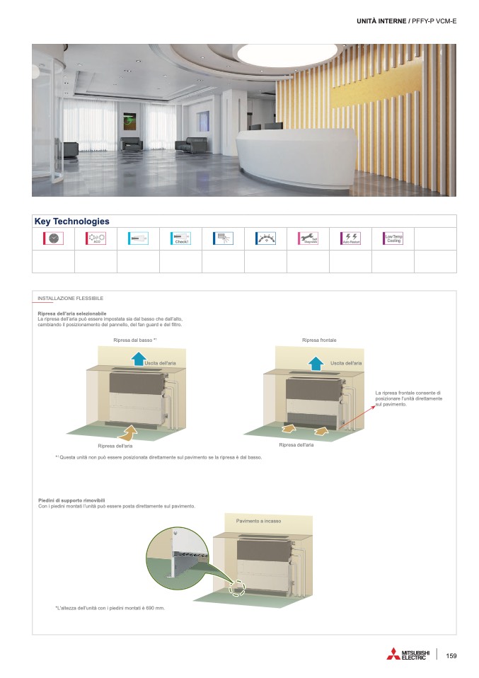 Con i piedini montati l’unità può essere posta direttamente sul pavimento.