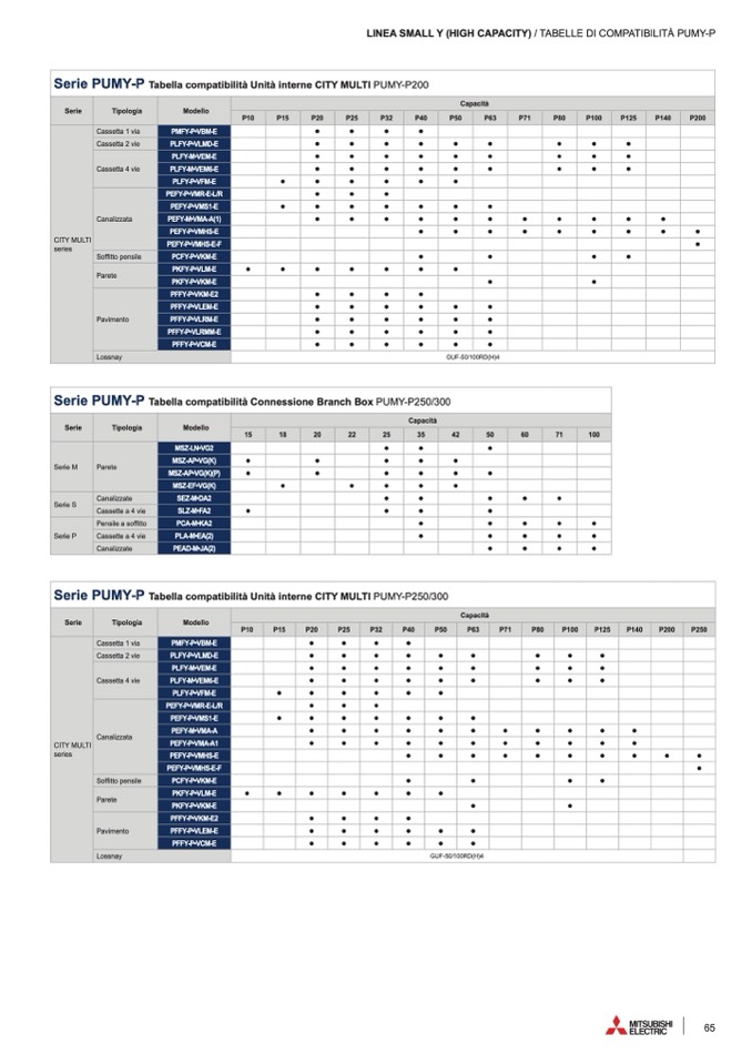 LINEA SMALL Y (HIGH CAPACITY) / TABELLE DI COMPATIBILITÀ PUMY-P