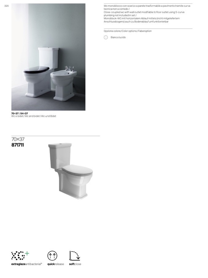 Wc monoblocco con scarico a parete trasformabile a pavimento tramite curva