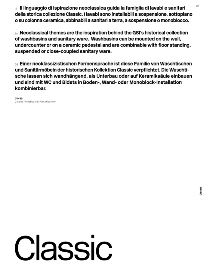 della storica collezione Classic. I lavabi sono installabili a sospensione, sottopiano