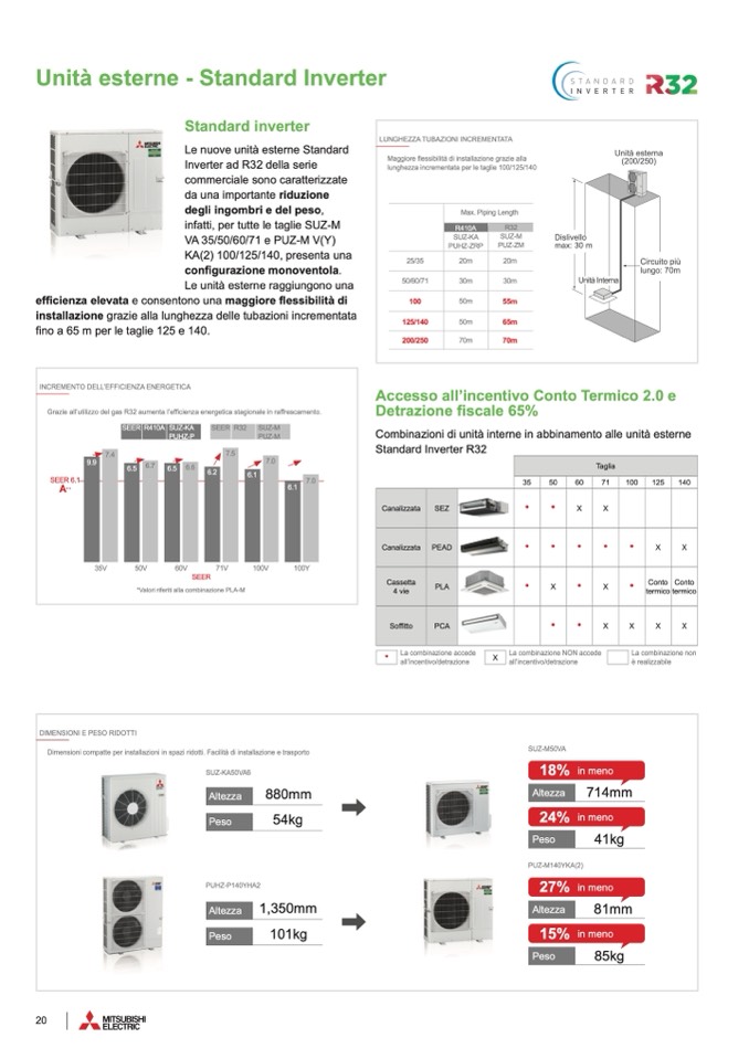 Grazie all’utilizzo del gas R32 aumenta l’efficienza energetica stagionale in raffrescamento.