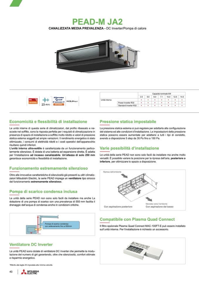 zatori Mitsubishi Electric, la serie PEAD impiega un ventilatore tipo sirocco