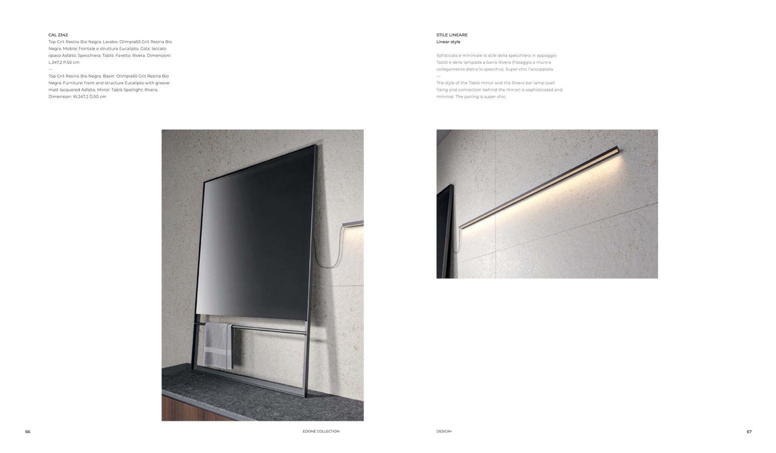 opaco Asfalto. Specchiera: Tablò. Faretto: Rivera. Dimensioni: