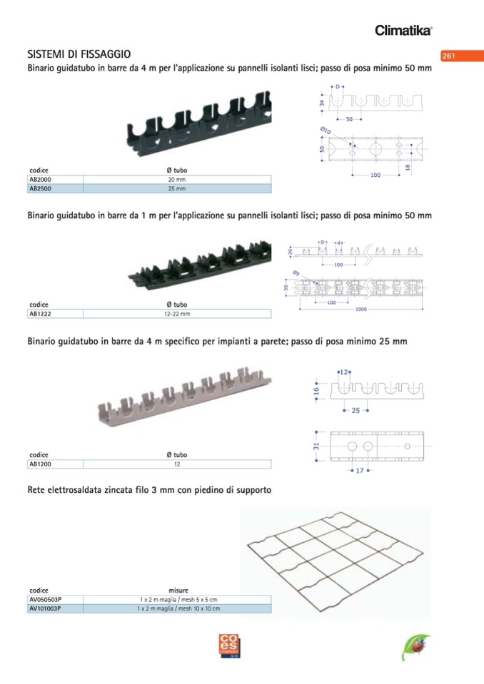 Binario guidatubo in barre da 4 m per l'applicazione su pannelli isolanti lisci; passo di posa minimo 50 mm