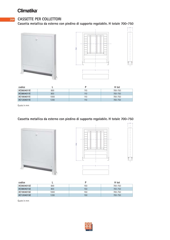 Cassetta metallica da esterno con piedino di supporto regolabile. H totale 700-750