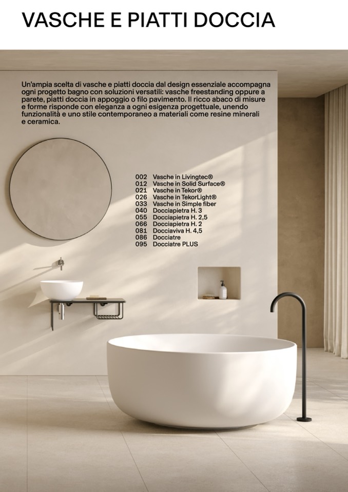 Un’ampia scelta di vasche e piatti doccia dal design essenziale accompagna