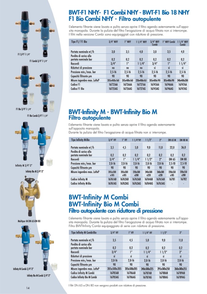 I filtri nella versione Combi sono equipaggiati con riduttore di pressione.