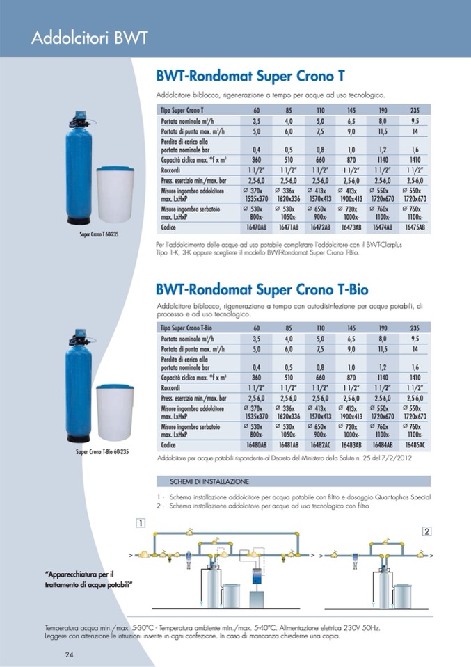 Tipo 1-K, 3-K oppure scegliere il modello BWT-Rondomat Super Crono T-Bio.