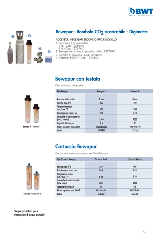 2. Bewapur M con testata portafiltro - Cod. 12758AC