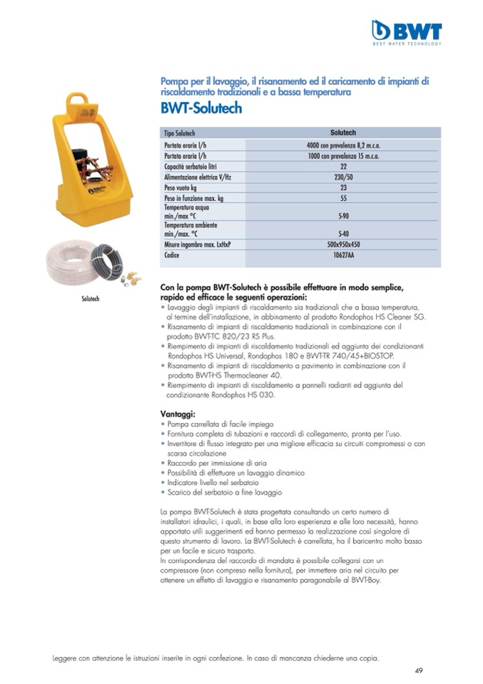 La pompa BWT-Solutech è stata progettata consultando un certo numero di