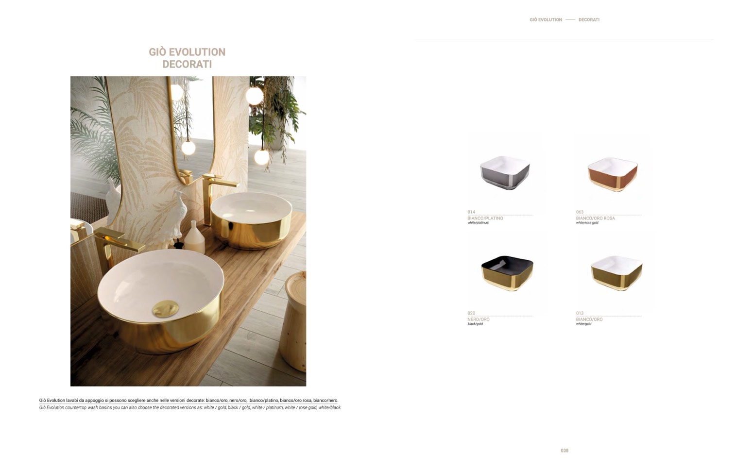 Giò Evolution countertop wash basins you can also choose the decorated versions as: white / gold, black / gold, white / platinum, white / rose gold, white/black.