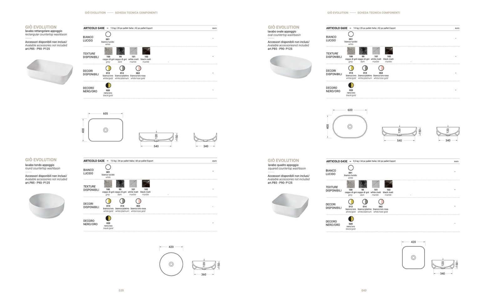 – 9,5 kg | 34 pz pallet Italia | 60 pz pallet Export