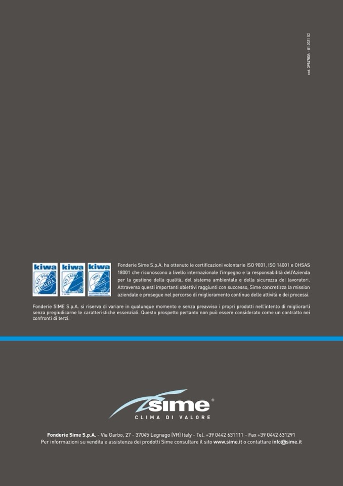Fonderie Sime S.p.A. - Via Garbo, 27 - 37045 Legnago (VR) Italy - Tel. +39 0442 631111 - Fax +39 0442 631291
