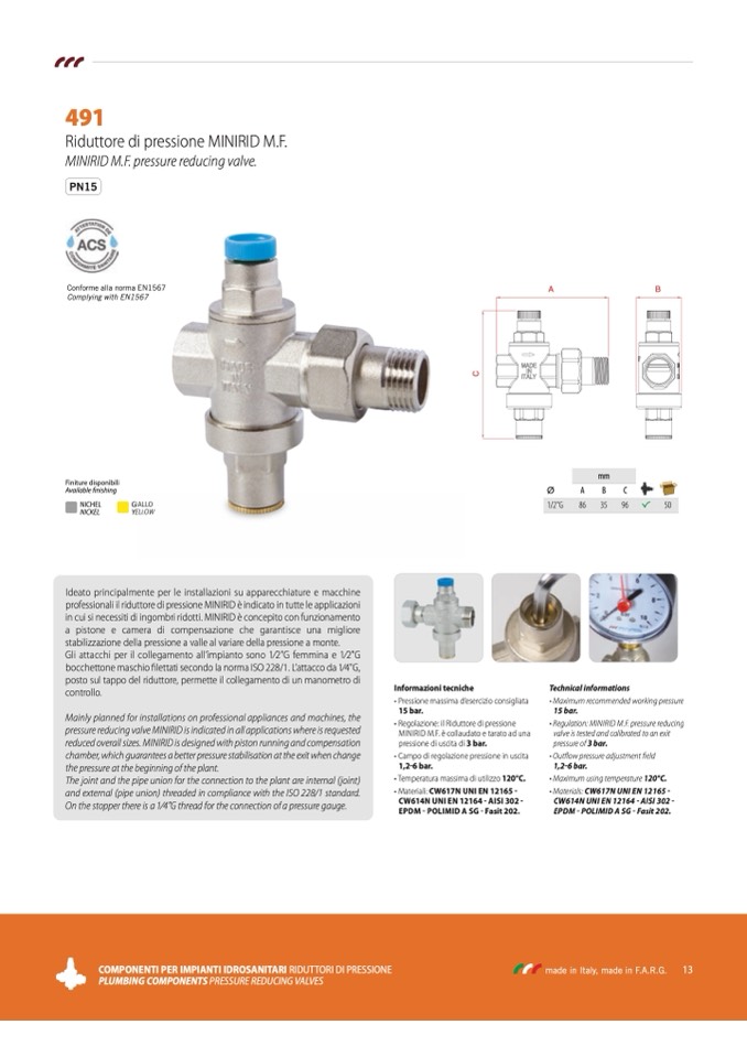 MINIRID M.F. pressure reducing valve.