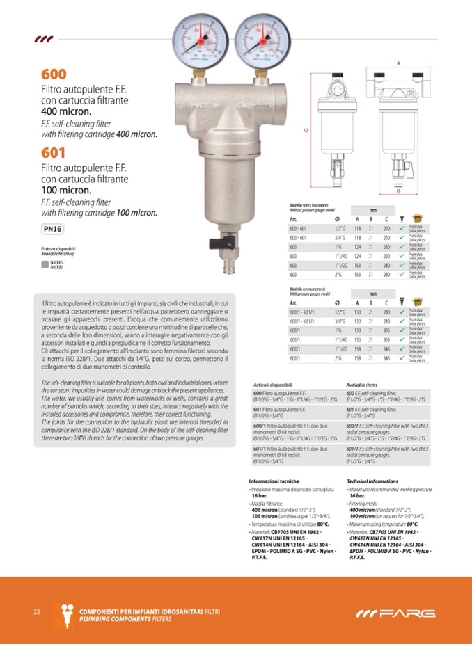 compliance with the ISO 228/1 standard. On the body of the self-cleaning filter