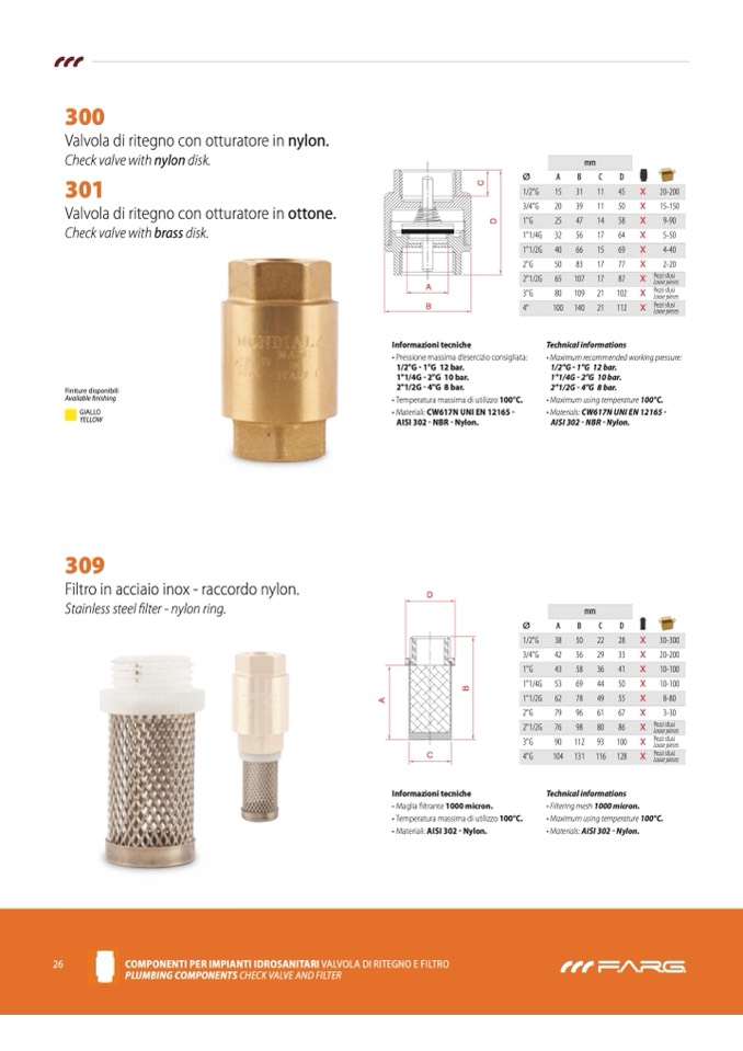 COmpONENTI pER ImpIANTI IdROSANITARI VALVOLA DI RITEGNO E FILTRO