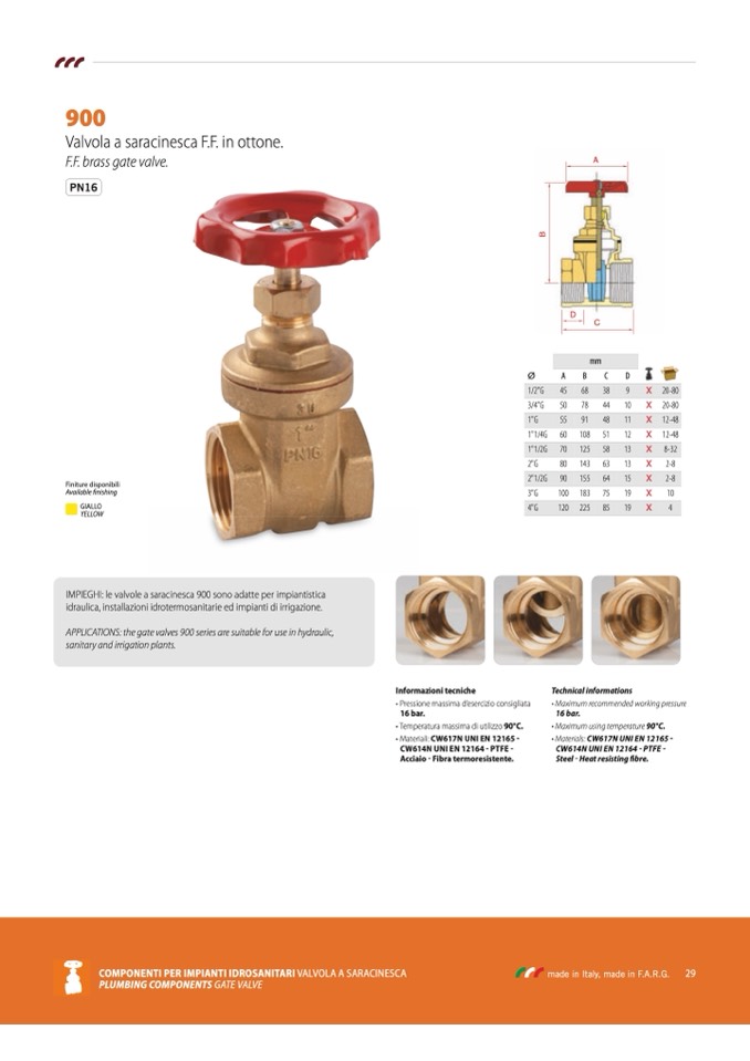 IMPIEGHI: le valvole a saracinesca 900 sono adatte per impiantistica
