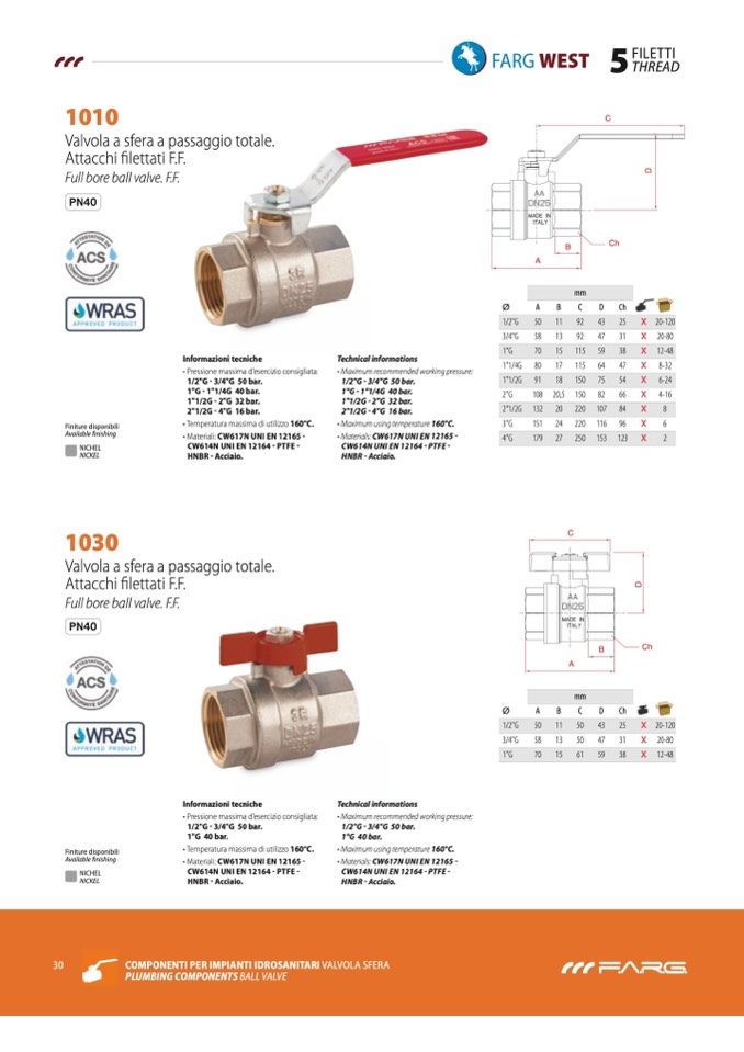 COmpONENTI pER ImpIANTI IdROSANITARI VALVOLA SFERA